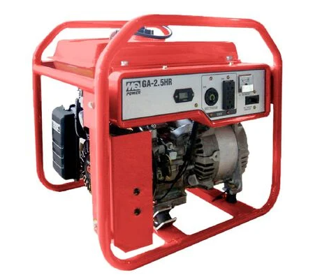 Compact 2500 watt (2200 W rated) Multiquip GA25HR professional portable generator with Honda GX160 engine, 120V output, GFCI outlets, and rugged steel frame for jobsite and home backup use. Multiquip 2500 Watt Portable Generator For Sale in USA, Canada & UK